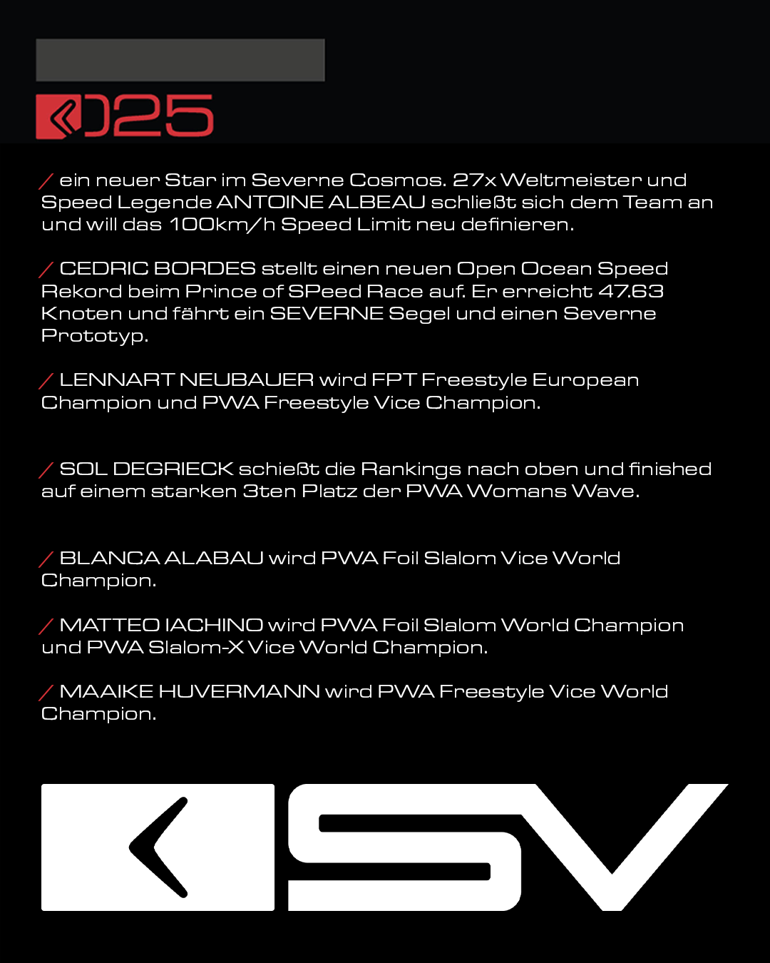 Das kommende Jahr steht bereits in den Startlöchern mit neuen Projekten, neuen Produkten und neuen Ambitionen. SEVERNE arbeitet an wegweisenden Entwicklungen, die Performance neu denken, und an Highlights, die ihr nicht verpassen wollt! :